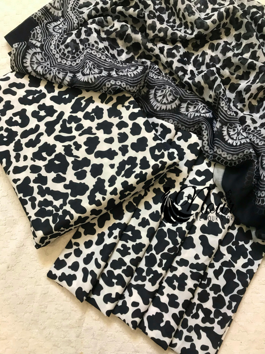 Premium Swiss Lawn 2025- Leopard Noir B&W.
