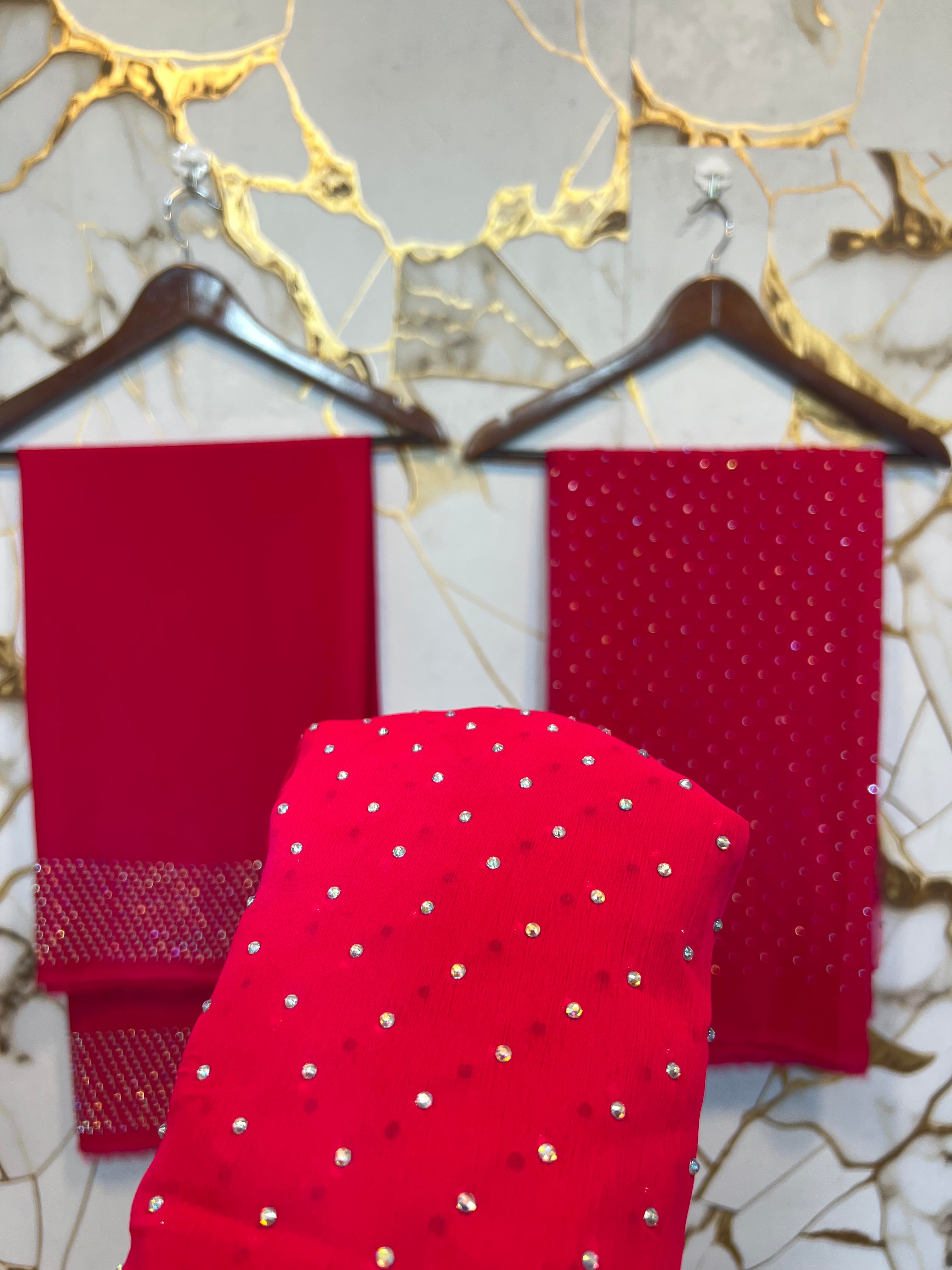 ✨Premium Collection 3 Piece Unstitched✨ •Turkish stones work ✨•Pure Bember Chiffon – fully soft •Non-removable, high-quality stones...