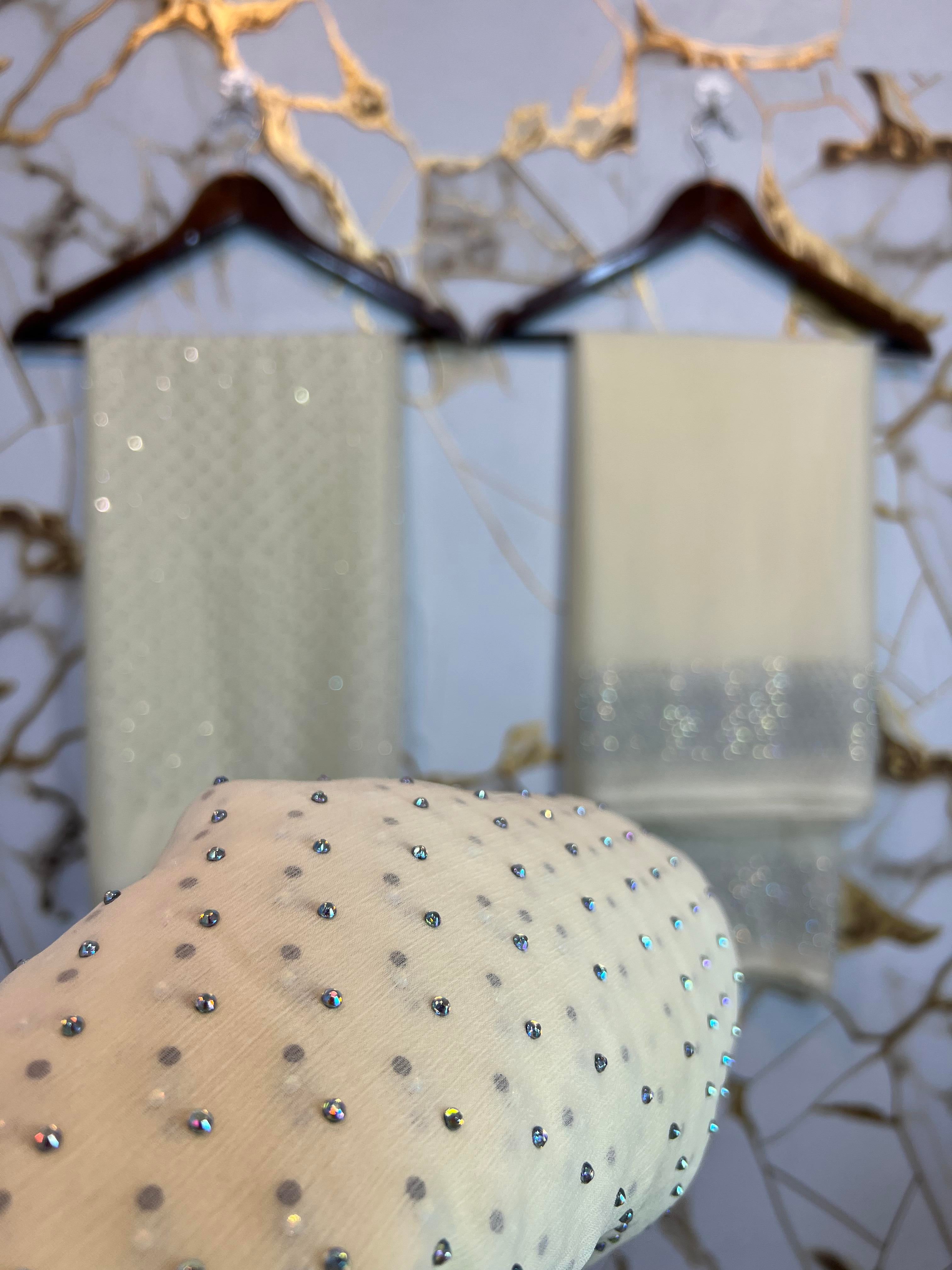 Twiligh Sparkle ( Unstiched 3PC Dress ) Cream