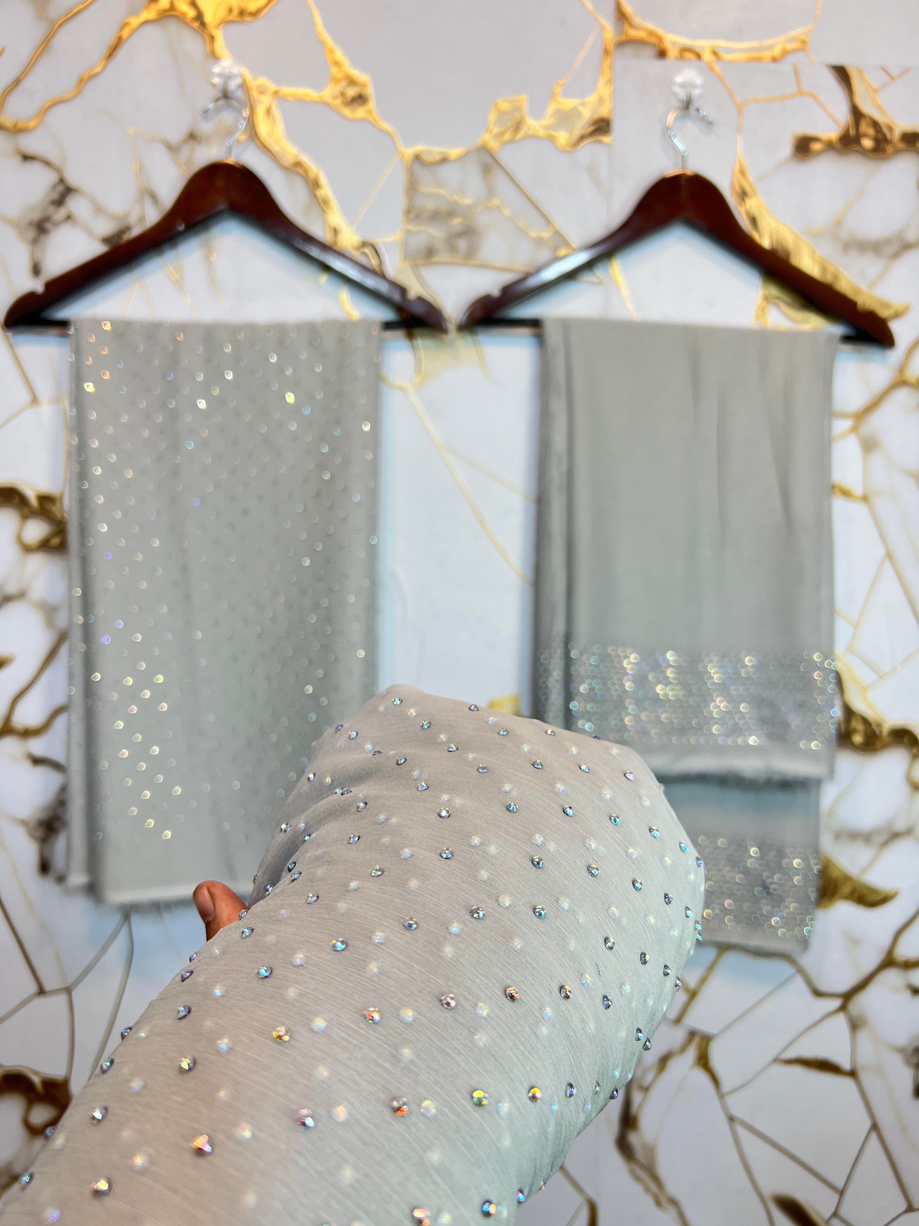 Twiligh Sparkle ( Unstiched 3PC Dress ) Steel Grey